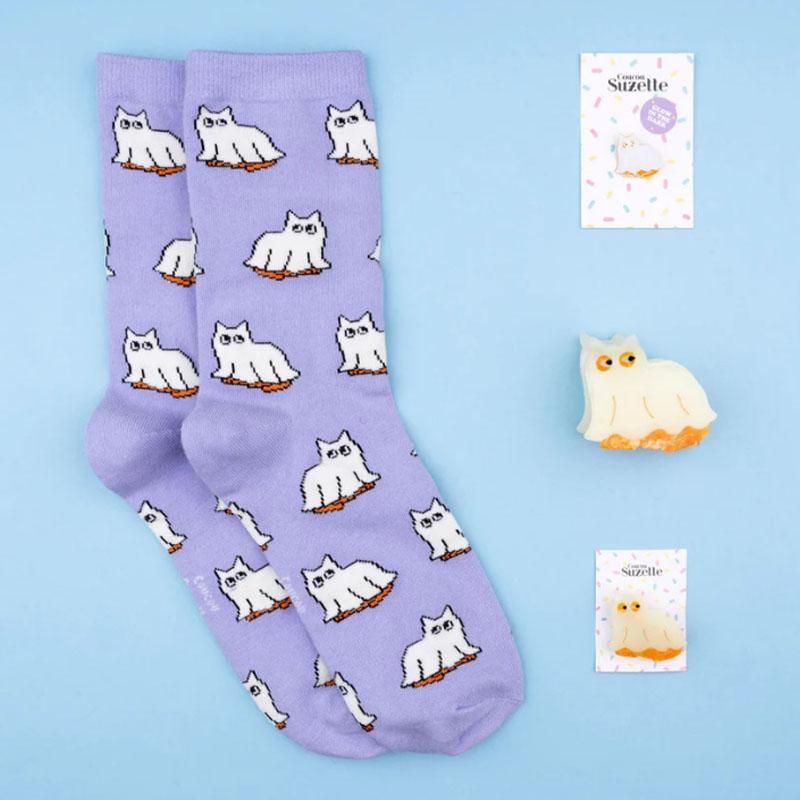トリック オア トリート!!!フランス発のアクセサリーブランド、Coucou Suzette(ククシュゼット)からハロウィンのヘアクリップが入荷しました。暗闇で光るアクセサリーの登場です。お化けマントをかぶったネコのヘアクリップは見た目の可愛いらしさで髪はもちろんのこと、トートバックやマザーズバッグにはさんでもOK!ちょっとしたギフトにとってもオススメです!