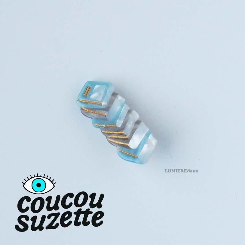 Coucou Suzette(ククシュゼット)はフランス人デザイナーのJuliette Mallet(ジュリエット・マレ)が2013年に設立したフランス発のアクセサリーブランドです。最初は冗談のつもりで、友人のためにセラミック製の小さな胸の形をしたリングを制作。それをInstagram(インスタグラム)に投稿した ところ、たくさんの人から『どこで買えるの?』と問い合わせが殺到。そのエピソードがブランド誕生のきっかけでした。ヘアクリップやアクセサリー、ソックスなど、カラフルでポップでセクシーでちょっとキッチュなアイテムが揃っています。 最近では、ロクシタンやオランジーナ、キールズなど日本でも有名なブランドとのコラボなど、活動の幅がどんどん広がっている、 人気急上昇中のブランドです。