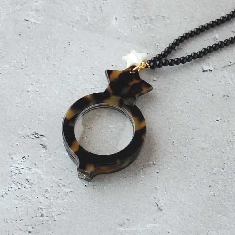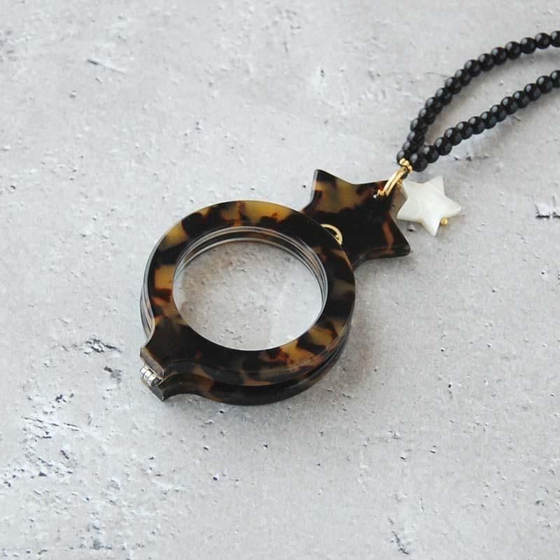 スペイン・マドリード発のアクセサリーブランド、FLIPPAN'LOOK(フリッパンルック)から素敵なネックレスが入荷しました。お洒落で可愛いルーペグラスが付いたペンダントルーペのネックレス。目を引く星形とべっ甲柄のルーペグラスの組み合わせは身に着けるだけで気分を上げてくれること間違いなし。拡大鏡およそ2倍のルーペグラスで値札やメニューなどの小さい文字をハッキリとカッコよく見ることができます。しかも折りたたみ可能なのでシンプルなトップスには存在感抜群なマストアイテム。ご自身へのご褒美、誕生日や記念日にクリスマス、母の日や父の日、還暦祝いや敬老の日といった特別な日のプレゼントにはもちろん、親子そろって身に着けたり、カップルでお揃いのペアグッズアイテムとしてもお楽しみいただけますよ!