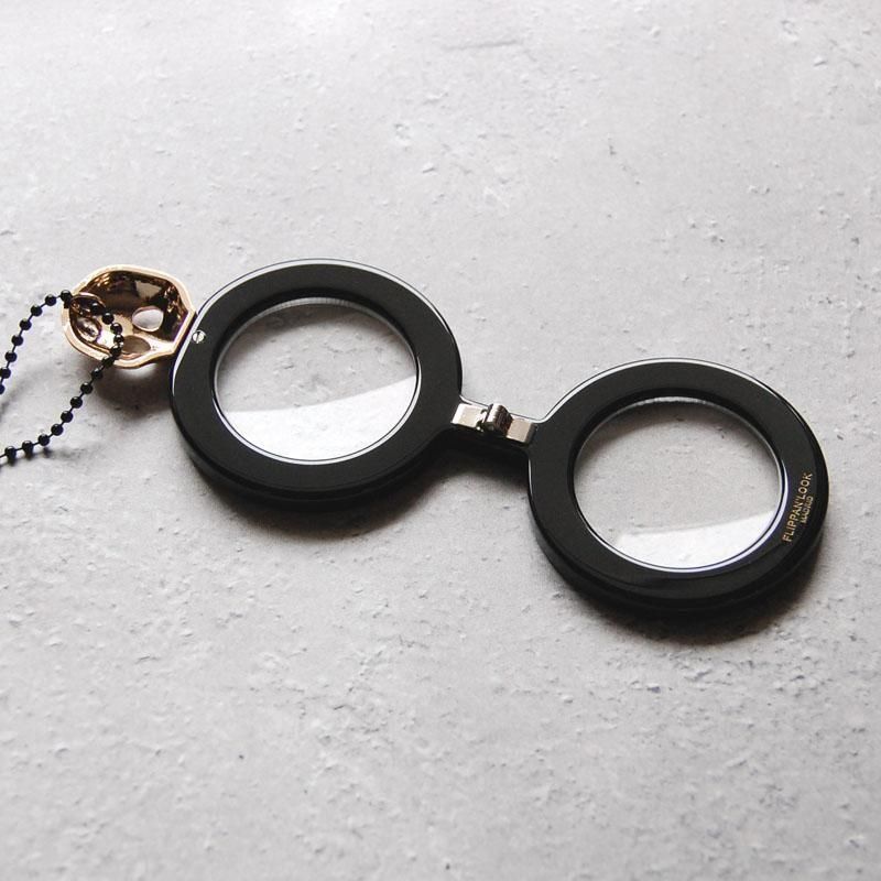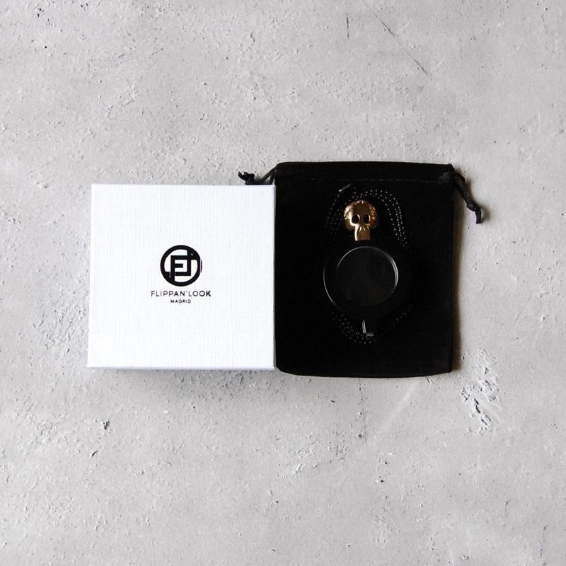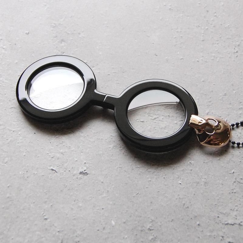スペイン・マドリード発のアクセサリーブランド、FLIPPAN'LOOK(フリッパンルック)から素敵なネックレスが入荷しました。お洒落で可愛いルーペグラスが付いたペンダントルーペのネックレス。光沢のあるゴールドのスカルにブラックカラーのルーペグラスの組み合わせは身に着けるだけで気分を上げてくれること間違いなし。拡大鏡およそ2倍のルーペグラスで値札やメニューなどの小さい文字をハッキリとカッコよく見ることができます。しかも折りたたみ可能なのでシンプルなトップスには存在感抜群なマストアイテム。ご自身へのご褒美、誕生日や記念日にクリスマス、母の日や父の日、還暦祝いや敬老の日といった特別な日のプレゼントにはもちろん、親子そろって身に着けたり、カップルでお揃いのペアグッズアイテムとしてもお楽しみいただけますよ!