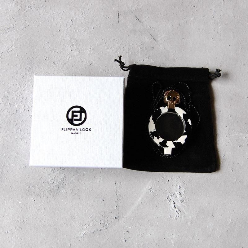 スペイン・マドリード発のアクセサリーブランド、FLIPPAN'LOOK(フリッパンルック)から素敵なネックレスが入荷しました。お洒落で可愛いルーペグラスが付いたペンダントルーペのネックレス。光沢のあるゴールドのスカルにダルメシアンカラーのルーペグラスの組み合わせは身に着けるだけで気分を上げてくれること間違いなし。拡大鏡およそ2倍のルーペグラスで値札やメニューなどの小さい文字をハッキリとカッコよく見ることができます。しかも折りたたみ可能なのでシンプルなトップスには存在感抜群なマストアイテム。ご自身へのご褒美、誕生日や記念日にクリスマス、母の日や父の日、還暦祝いや敬老の日といった特別な日のプレゼントにはもちろん、親子そろって身に着けたり、カップルでお揃いのペアグッズアイテムとしてもお楽しみいただけますよ!