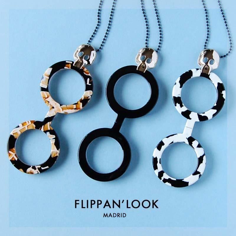 FLIPPAN'LOOK(フリッパンルック)はスペイン人デザイナーの母親Sonia・Nogales(ソニア・ノガレス)と娘のSonia・Marin(ソニア・マリン)の親子で2010年に設立されたスペイン・マドリード発のアクセサリーブランドです。ブランドを立ち上げるきっかけは母親がイタリアを旅行しているときに思いついたそうです。彼女は目が悪く、眼鏡を必要としていましたがすぐに失くしてしまうクセがあり、旅先ではいつも困っていました。そんなときにフィレンツェのアンティークショップで見つけたある虫眼鏡に彼女は目を奪われました。なぜかというとその虫眼鏡はメダリストが首にかけるようなもので肌身離さずに持っていられる素晴らしい虫眼鏡だったからです。母親のソニア・ノガレスはマドリードに戻ると娘のソニア・マリンと一緒に製作に取り掛かりました。それから試行錯誤を繰り返しながらも彼女たちはついにファッションと機能性を兼ね備えたペンダントルーペのネックレスを完成することができました。今、彼女たちの楽しくて創造的な作品たちは世界中の人たちの心をつかみ人気がどんどん広がっている大注目のブランドです。