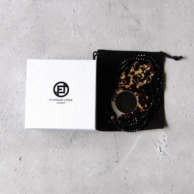FLIPPAN'LOOK(フリッパンルック)はスペイン人デザイナーの母親Sonia・Nogales(ソニア・ノガレス)と娘のSonia・Marin(ソニア・マリン)の親子で2010年に設立されたスペイン・マドリード発のアクセサリーブランドです。ブランドを立ち上げるきっかけは母親がイタリアを旅行しているときに思いついたそうです。彼女は目が悪く、眼鏡を必要としていましたがすぐに失くしてしまうクセがあり、旅先ではいつも困っていました。そんなときにフィレンツェのアンティークショップで見つけたある虫眼鏡に彼女は目を奪われました。なぜかというとその虫眼鏡はメダリストが首にかけるようなもので肌身離さずに持っていられる素晴らしい虫眼鏡だったからです。母親のソニア・ノガレスはマドリードに戻ると娘のソニア・マリンと一緒に製作に取り掛かりました。それから試行錯誤を繰り返しながらも彼女たちはついにファッションと機能性を兼ね備えたペンダントルーペのネックレスを完成することができました。今、彼女たちの楽しくて創造的な作品たちは世界中の人たちの心をつかみ人気がどんどん広がっている大注目のブランドです。