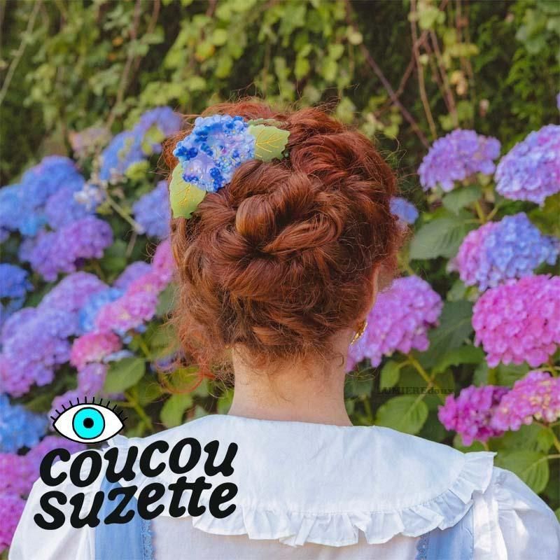 フランス発のアクセサリーブランド、Coucou Suzette(ククシュゼット)から素敵なお花のヘアクリップが入荷しました。ロマンチックでエレガントなアジサイのヘアクリップは見た目の可愛いらしさで髪はもちろんのこと、トートバックやマザーズバッグにはさんでもOK!ちょっとしたギフトにとってもオススメです!