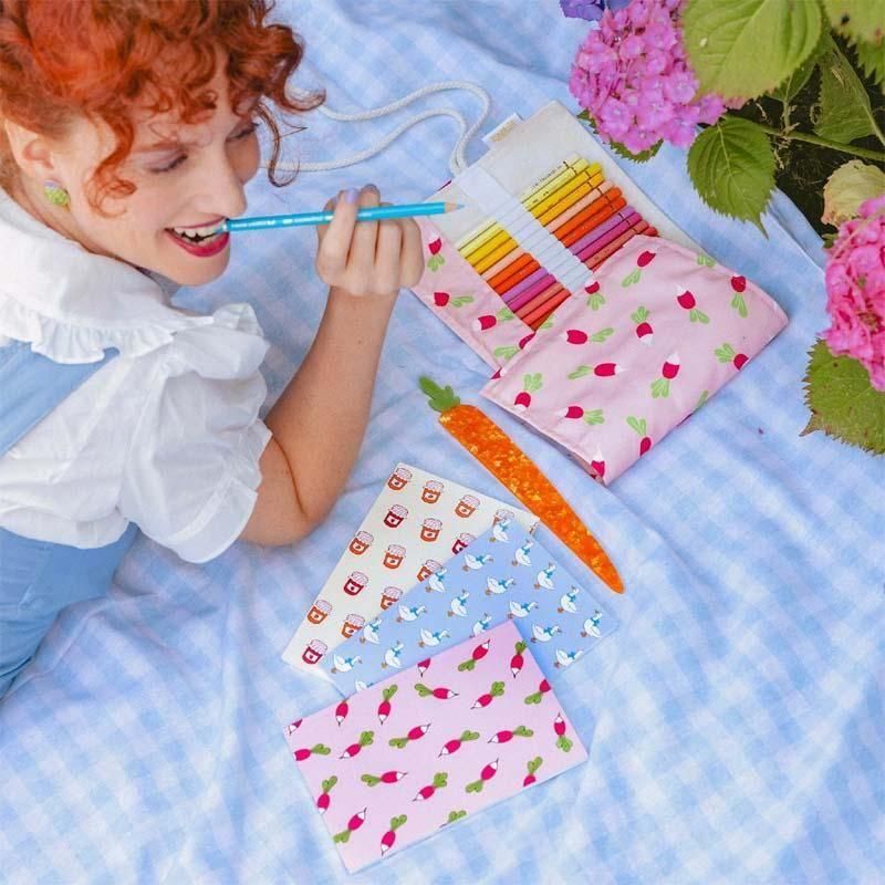 フランス発のアクセサリーブランド、Coucou Suzette(ククシュゼット)から思わずにっこりしてしまう文房具が入荷しました。これからの季節、外で絵を描くときにぴったりの色鉛筆収納バッグです。こんなに可愛いロールペンケースは見たことありません!36穴には鉛筆からペン・マーカーに筆などを収納出来て、簡単に折りたためるのでどんなアートの冒険にもお供できます。”そういえばあの子、絵を描いていたわ!”そう思い出したら、ぜひギフトで贈ってみてください。きっと喜んでいただけるはずですよ!