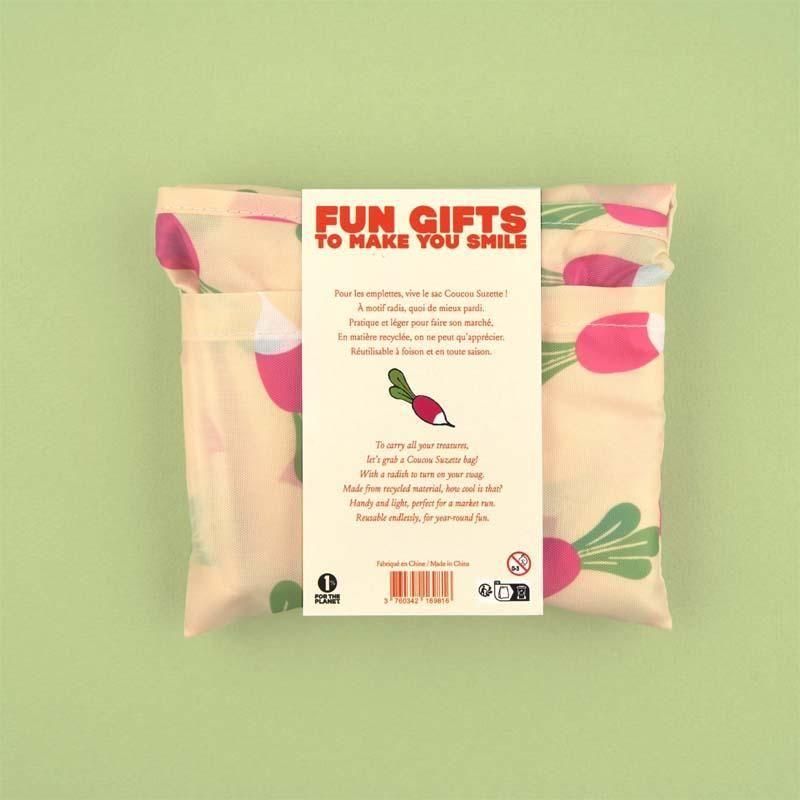 フランス発のアクセサリーブランド、Coucou Suzette(ククシュゼット)から素敵な折りたたみのエコバッグが入荷しました。愛らしいラディッシュ柄がアクセントになっているオシャレでキャッチーなエコバッグ。リサイクル素材で作られた環境にやさしいエコバックはもっとお買い物が楽しくなるスマイルアイテム。お持ちのヘアクリップをワンポイントで着ければ楽しさ倍増!ちょっとしたギフトにとってもオススメですよ!