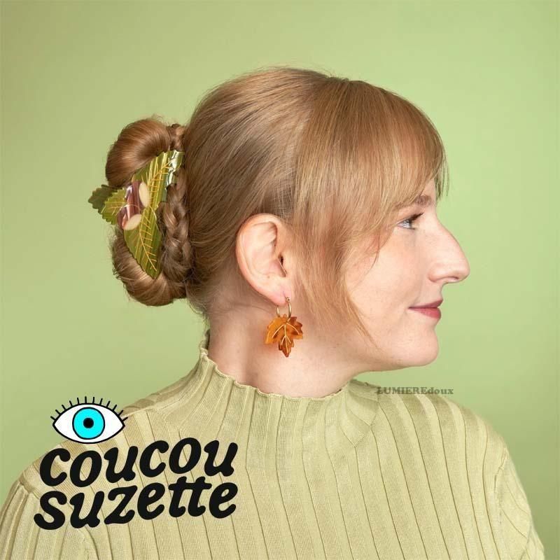 フランス発のアクセサリーブランド、Coucou Suzette(ククシュゼット)から実りの秋のヘアクリップが入荷しました。緑のリーフに存在感を放つ栗のヘアクリップは見た目の可愛いらしさで髪はもちろんのこと、トートバックやマザーズバッグにはさんでもOK!ちょっとしたギフトにとってもオススメです!