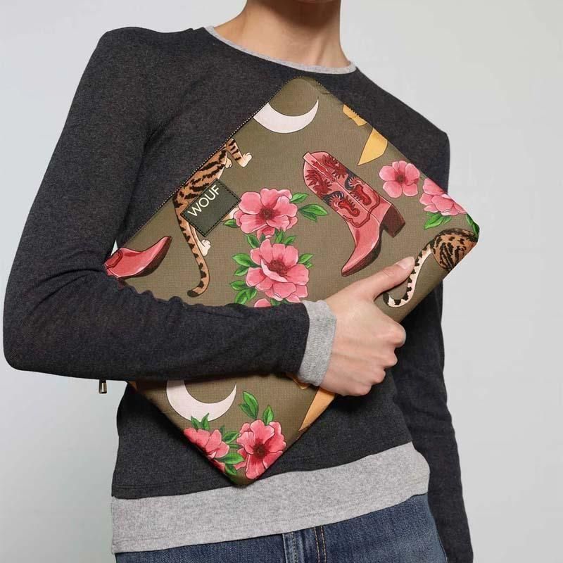 WOUF(ウッフ)は2008年にスペイン・バルセロナで設立したサステナブルデザインブランドです。メインのアイテムである華やかなプリントとシンプルなフォルムが魅力のノートパソコンケースは、世界中のトレンドセッターに愛用されています。WOUFはデザインから製造までをサグラダファミリア近くにある自社のアトリエで行っており、責任ある素材のみを使用して、機能性と大胆なデザインを融合させた高品質のバッグやアクセサリーを生み出し続けています。