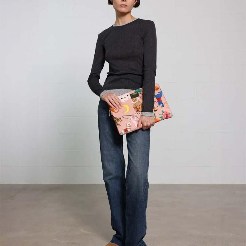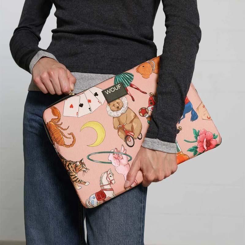WOUF(ウッフ)は2008年にスペイン・バルセロナで設立したサステナブルデザインブランドです。メインのアイテムである華やかなプリントとシンプルなフォルムが魅力のノートパソコンケースは、世界中のトレンドセッターに愛用されています。WOUFはデザインから製造までをサグラダファミリア近くにある自社のアトリエで行っており、責任ある素材のみを使用して、機能性と大胆なデザインを融合させた高品質のバッグやアクセサリーを生み出し続けています。